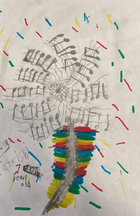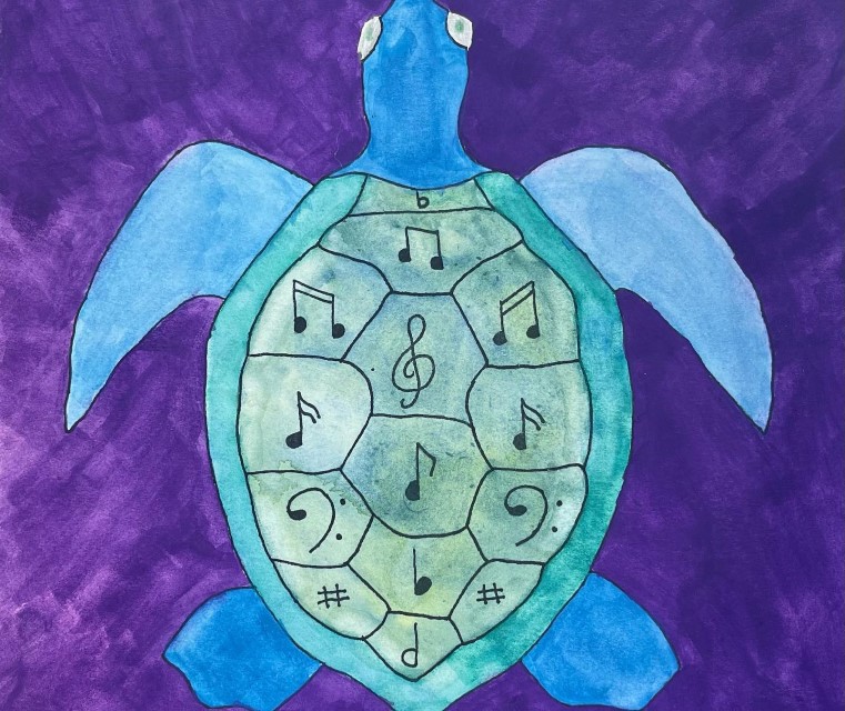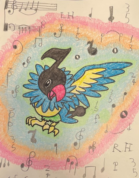 Using 8.5″ x 11″ paper, use pencils, crayons, paint, or pastels to create an art piece with a music theme and drop it off at the front desk (be sure to write your name and age on the back).